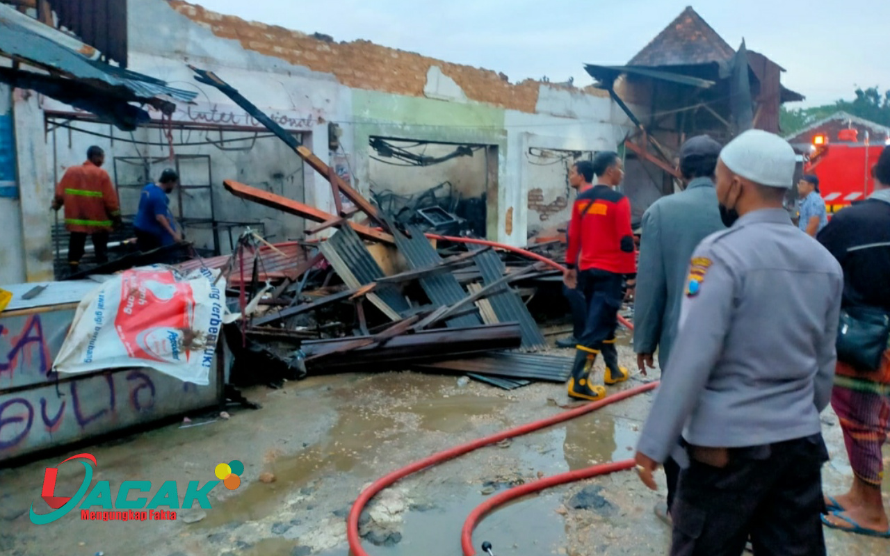SUMENEP, Lacak.co.id – Jago merah mengamuk, kios di pasar Lenteng di Dusun Jepun Timur, Desa Lenteng Timur, Kecamatan Lenteng, Kabupaten Sumenep, Madura, Jawa Timur, ludes dilalap si jago merah, Jum’at (1/4/2022).
