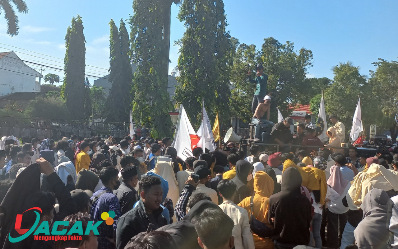 Pantauan Lacak.co.id, massa aksi berjalan kaki menuju halaman gedung DPRD setempat pada pukul 15.00 WIB, sambil berorasi, tidak ada satupun anggota DPRD yang menemui mahasiswa.
