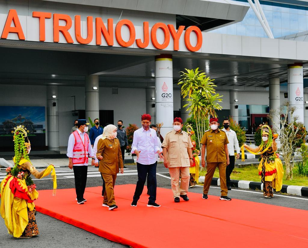 Pantauan Lacak.co.id, Presiden Joko Widodo didampingi Menteri Pertahanan Prabowo Subianto, Menteri Sekretaris Negara Pratikno, Menteri BUMN Erick Thohir, Gubernur Jawa Timur Khofifah Indar Parawansa, dan Bupati Sumenep Achmad Fauzi.