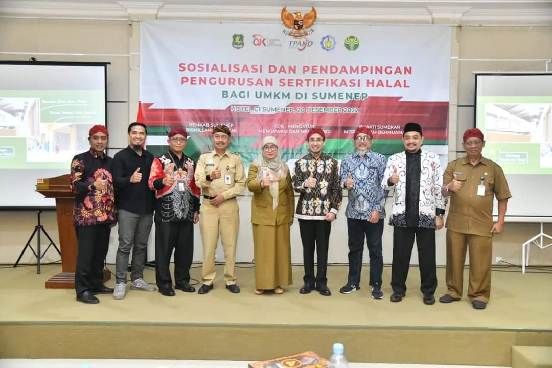 Acara Sosialisasi dan Pendampingan Sertifikasi Halal bagi UMKM tersebut dihadiri Wakil Bupati Sumenep Hj. Dewi Khalifah atau Nyai Eva. Sekda Edy Rasiyadi, Direktur Pengawasan LJk II dan Menagemen Strategis OJK Kantor Regional IV Jatim Deddy Patria, Manager ITS Saints Tekno, Agus, bertempat di salah satu Hotel di sumenep, pada Selasa (20/12/2022).