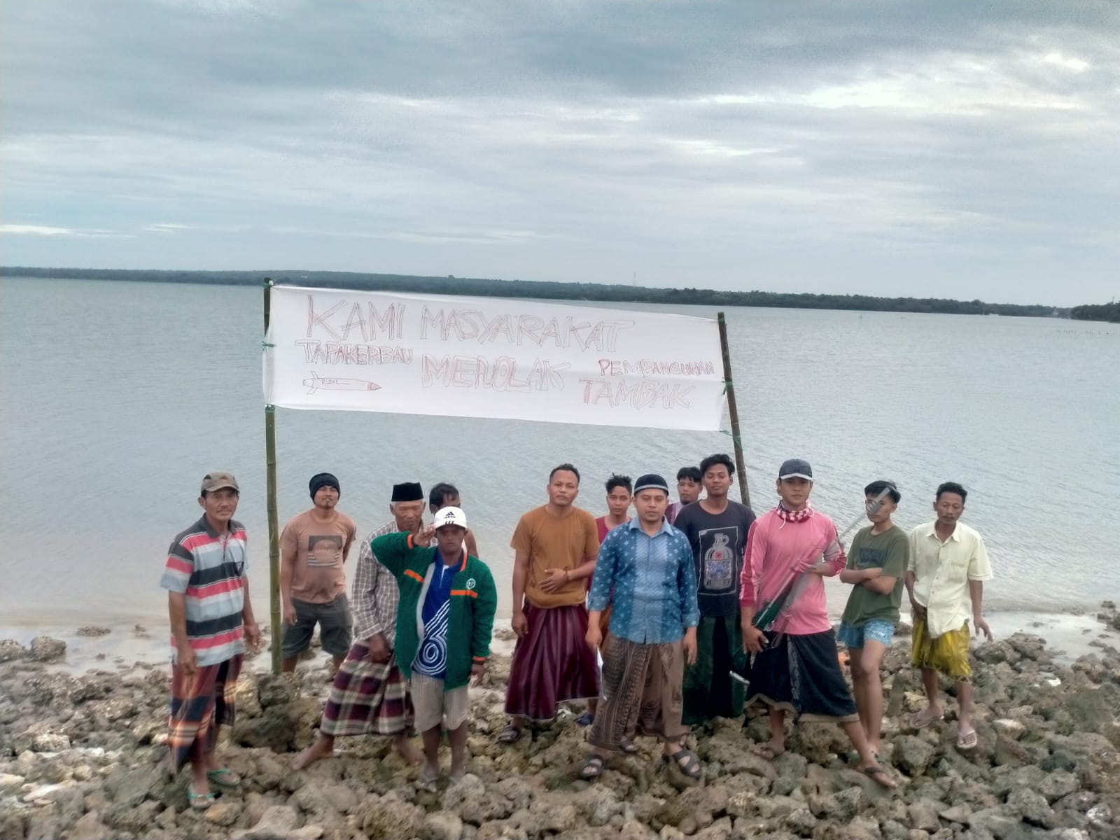 ”Tadi kami terdiri dari pemuda dan warga Kampung Tapakerbau aksi sekaligus sama sama berjanji untuk menolak keras pembangunan tambak. Karena akan berdampak buruk terhadap masyarakat khususnya Tapakerbau,” ungkap perwakilan Warga, Ahmad Siddik.