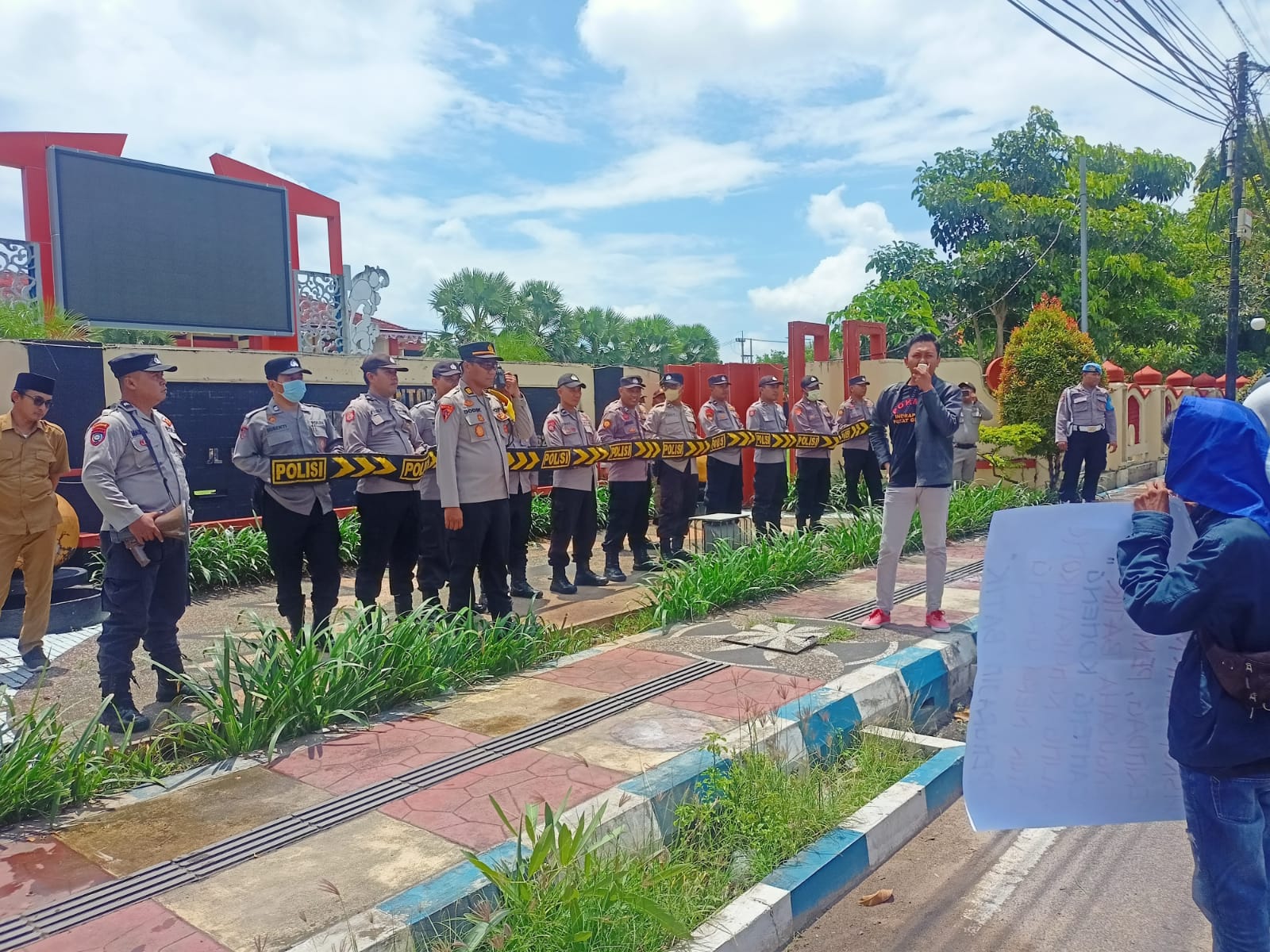Sejumlah pemuda dan mahasiswa yang tergabung dalam aktivis Demokrasi dan Aspirasi Rakyat Jawa Timur (Dear Jatim) Korda Sumenep, Jawa Timur berunjukrasa ke kantor Bupati, di Jl. Dr. Cipto, Kecamatan Kota.