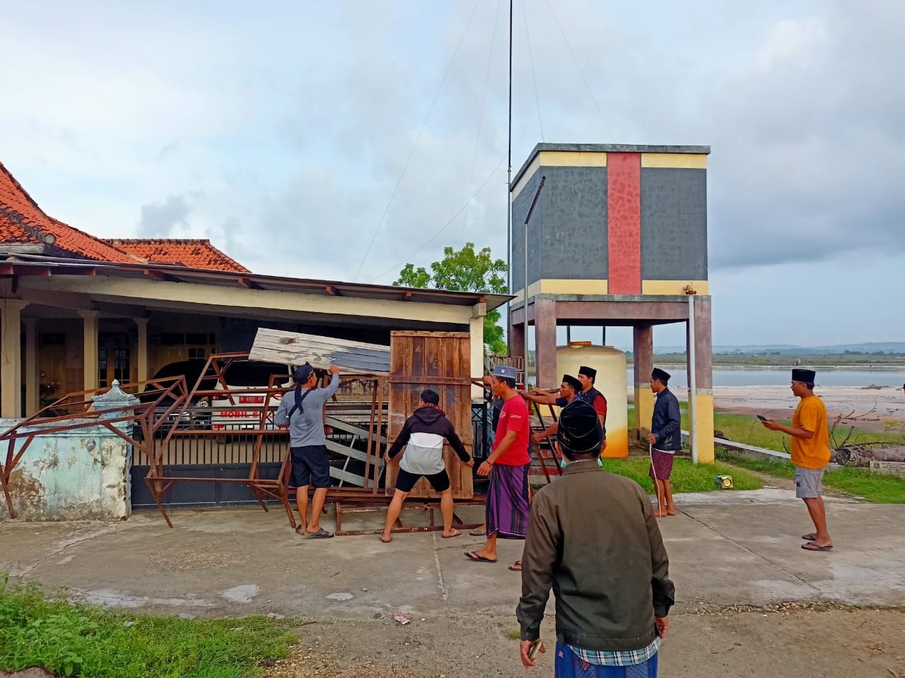 Sayangnya, tidak satupun perangkat Desa yang ada di Balai, sehingga aksi segel balai Desa juga dilakukan dengan mamasang kayu dan besi di pintu masuk balai.