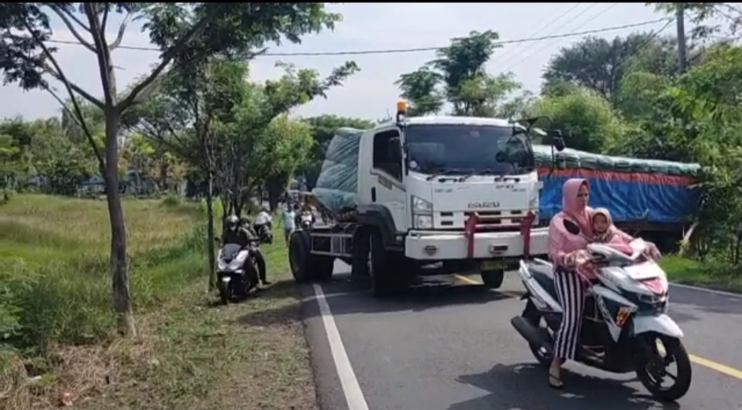 SUMENEP, Lacak.co.id – Mobil truk tronton muatan semen merosot mundur ditanjakan jalan Raya Nasional (Rong Erong) Bluto, Kecamatan Bluto, Kabupaten Sumenep, Madura, Jawa Timur, Rabu (5/4/2023).