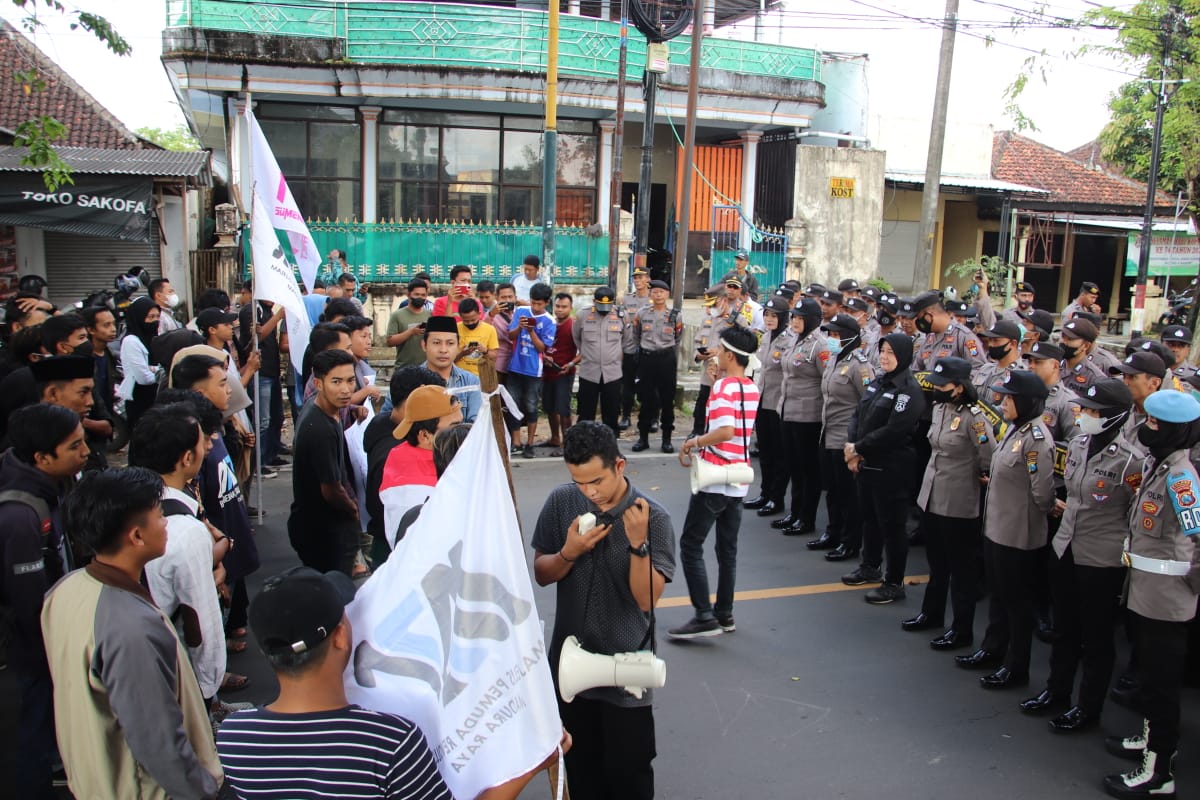 Hingga menjelang berbuka puasa, massa aksi masih bertahan di depan kantor Polres Sumenep.