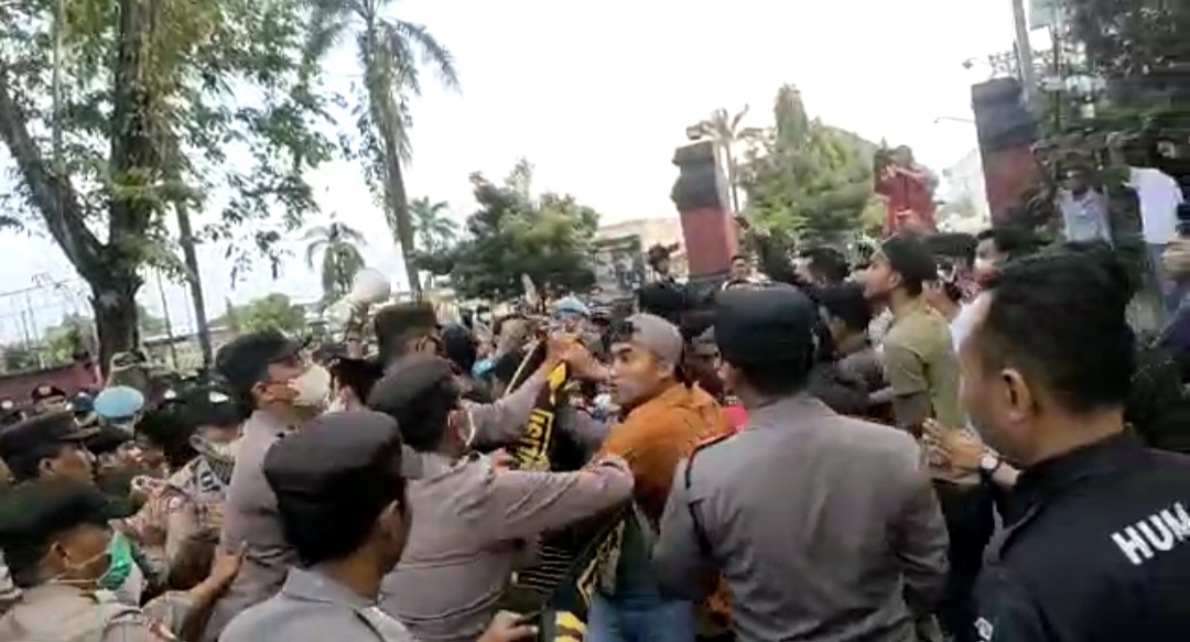 “Miris, sungguh keadilan telah dipermainkan oleh penegak hukum,” teriak korlap aksi