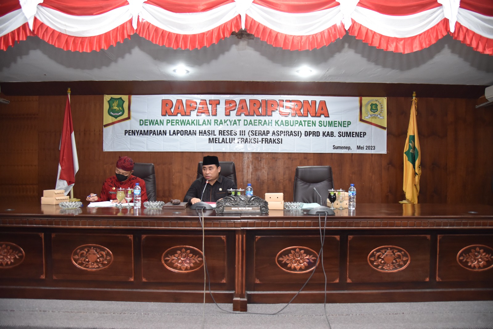 SUMENEP, Lacak.co.id – Dewan Perwakilan Rakyat Daerah (DPRD) Kabupaten Sumenep, Madura, Jawa Timur, menggelar rapat paripurna atas ‘Penyampaian Laporan Hasil Reses III (Serap Aspirasi), Jum’at (12/05/2023).