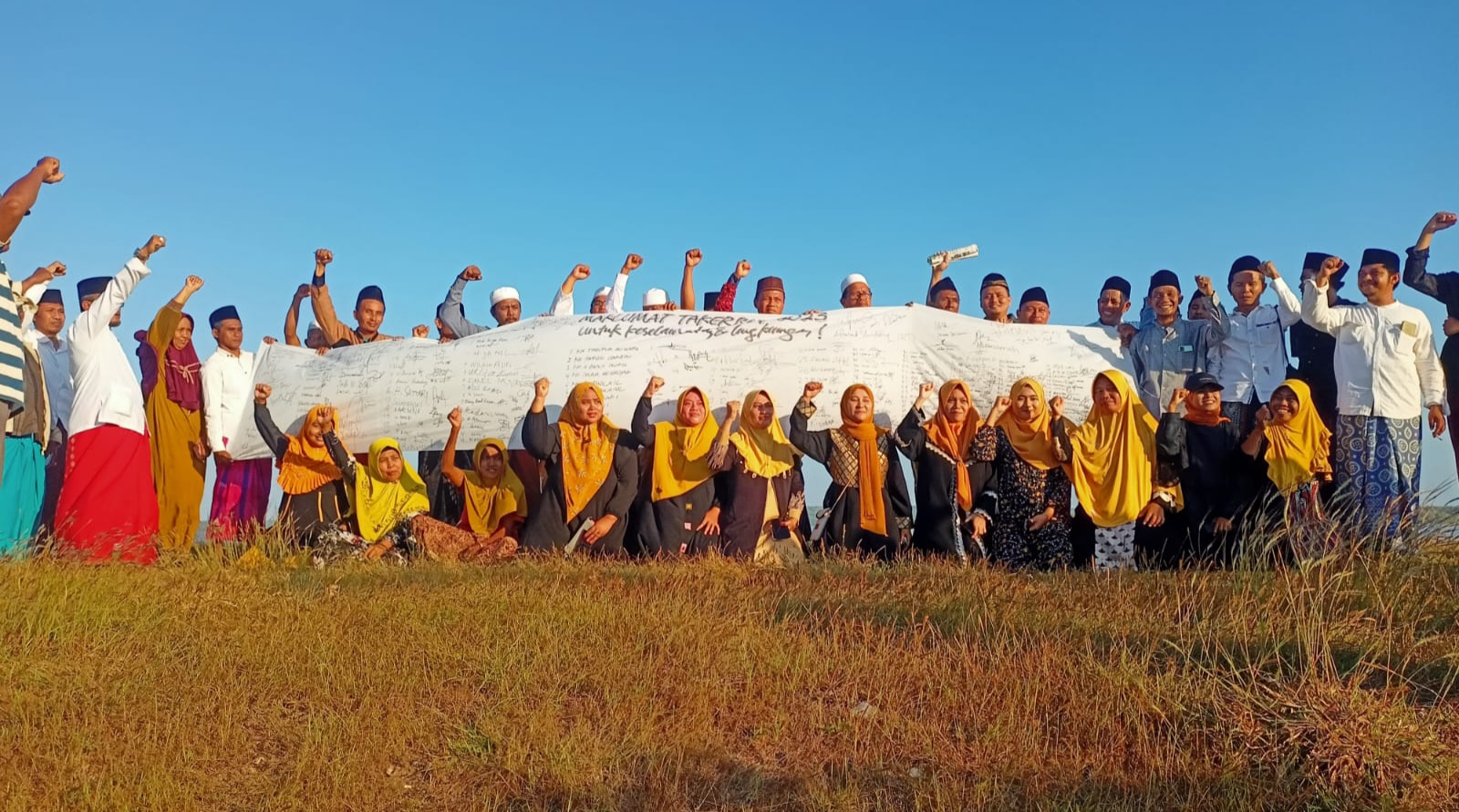 ”Dan hari ini, setelah Istighosah sebagian warga langsung bergerak ke Pantai untuk melakukan pemasangan Maklumat sebagai bentuk perlawanan. Air laut boleh surut, tapi perjuangan haram untuk surut,” ungkapnya.