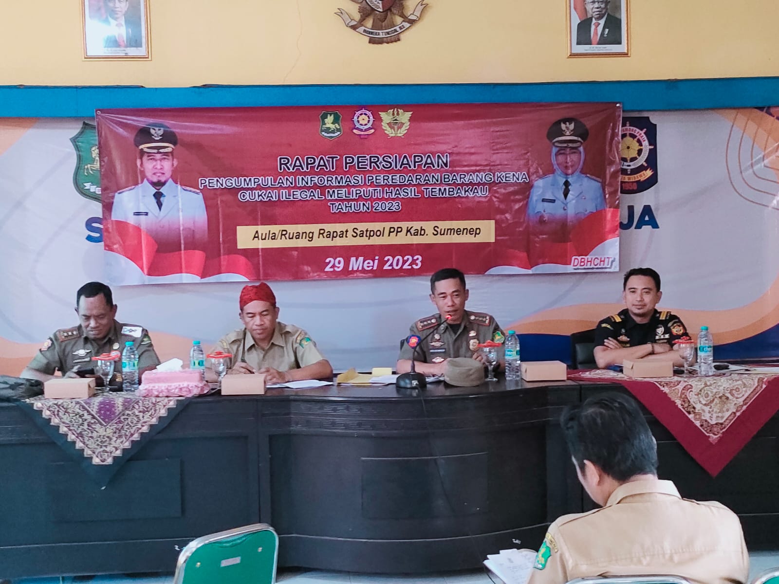 SUMENEP, Lacak.co.id – Satuan Polisi Pamong Praja (Satpol PP) menggelar Rapat Persiapan Pengumpulan Informasi Barang Kena Cukai Ilegal Meliputi Hasil Tembakau, di Aula/Ruang Rapat Kantor Satpol PP setempat, Senin (29/05/2023).