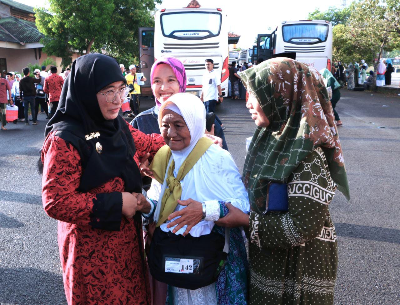 SUMENEP, Lacak.co.id – Wakil Bupati Sumenep, Madura, Jawa Timur Hj. Dewi Khalifah menyambut langsung kedatangan para Jamaah haji dari tanah suci Mekkah, di Lapangan GOR A. Yani Pangligur, Jumat, (07/07/2023).