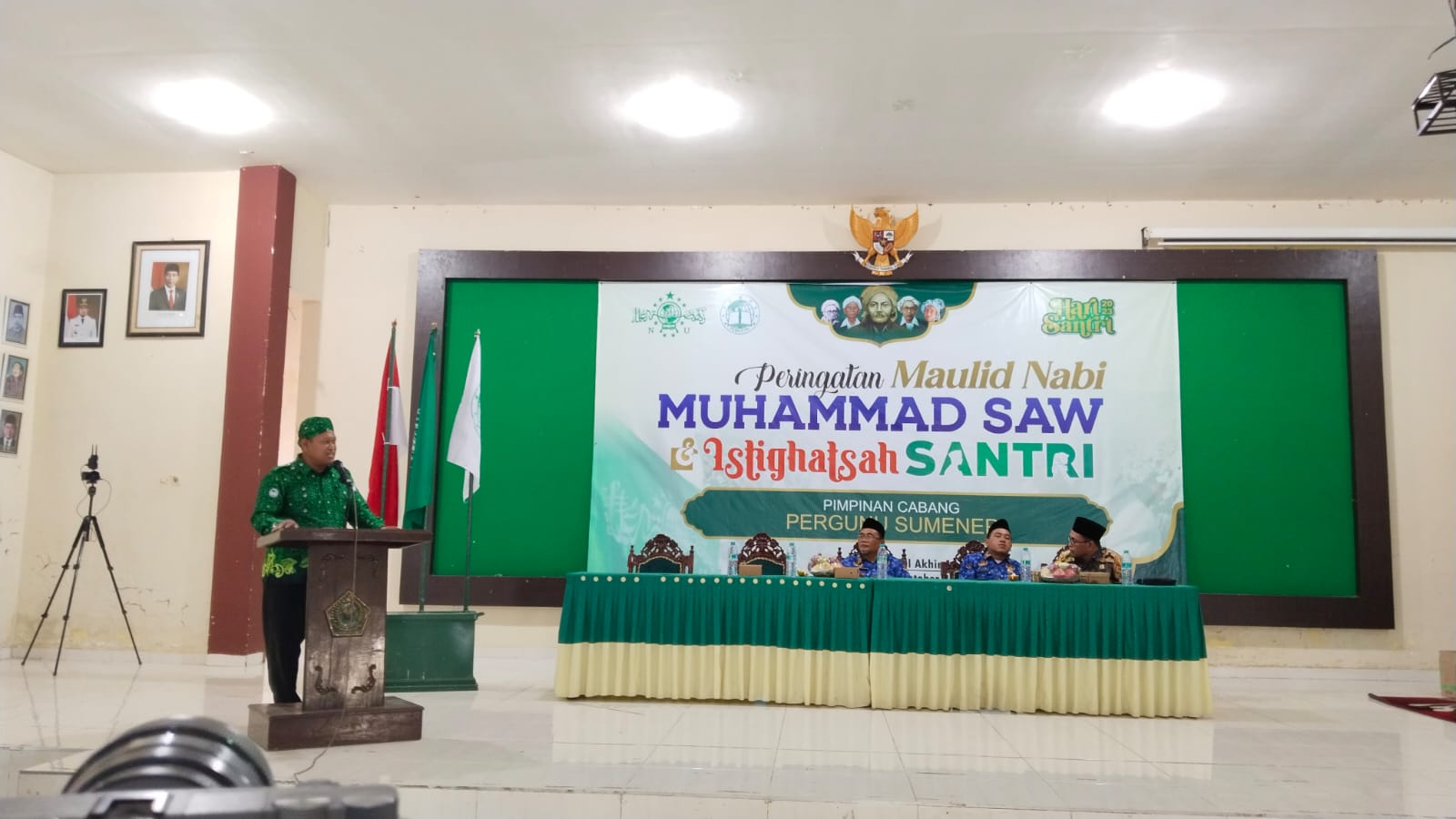 Ketua Pimpinan Cabang (PC) PERGUNU Sumenep, Moh. Shaleh dalam sambutannya menyampaikan ikut memeriahkan momentum hari santri nasional dengan mengadakan acara Istighatsah dan maulid.
