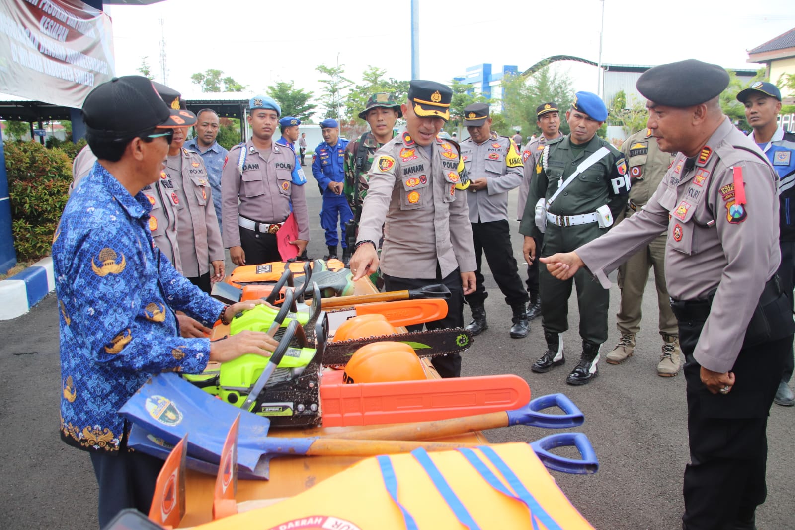 Kegiatan apel gelar pasukan dan peralatan dilaksanakan sebagai bentuk kesiapan Polres Sumenep dalam menghadapi potensi bencana hidrometeorologi.