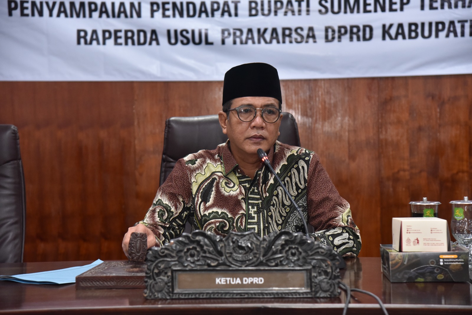 ”Sesuai dengan agenda rapat DPRD pada hari ini, izinkan saya menyampaikan pendapat bupati atas nota penjelasan DPRD terhadap 3 (tiga) rancangan peraturan daerah Kabupaten Sumenep usul prakarsa DPRD tahun 2024, sebagai berikut :