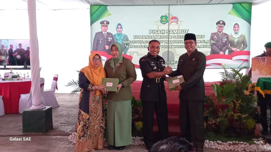 “Kami menyampaikan terima kasih kepada Letkol Czi. Donny Pramudya Mahardi, SE (Komandan Kodim 0827 Sumenep yang lama) atas dedikasi, perjuangan dan pengorbanannya untuk bersama-sama membangun Kabupaten Sumenep,” jelasnya.