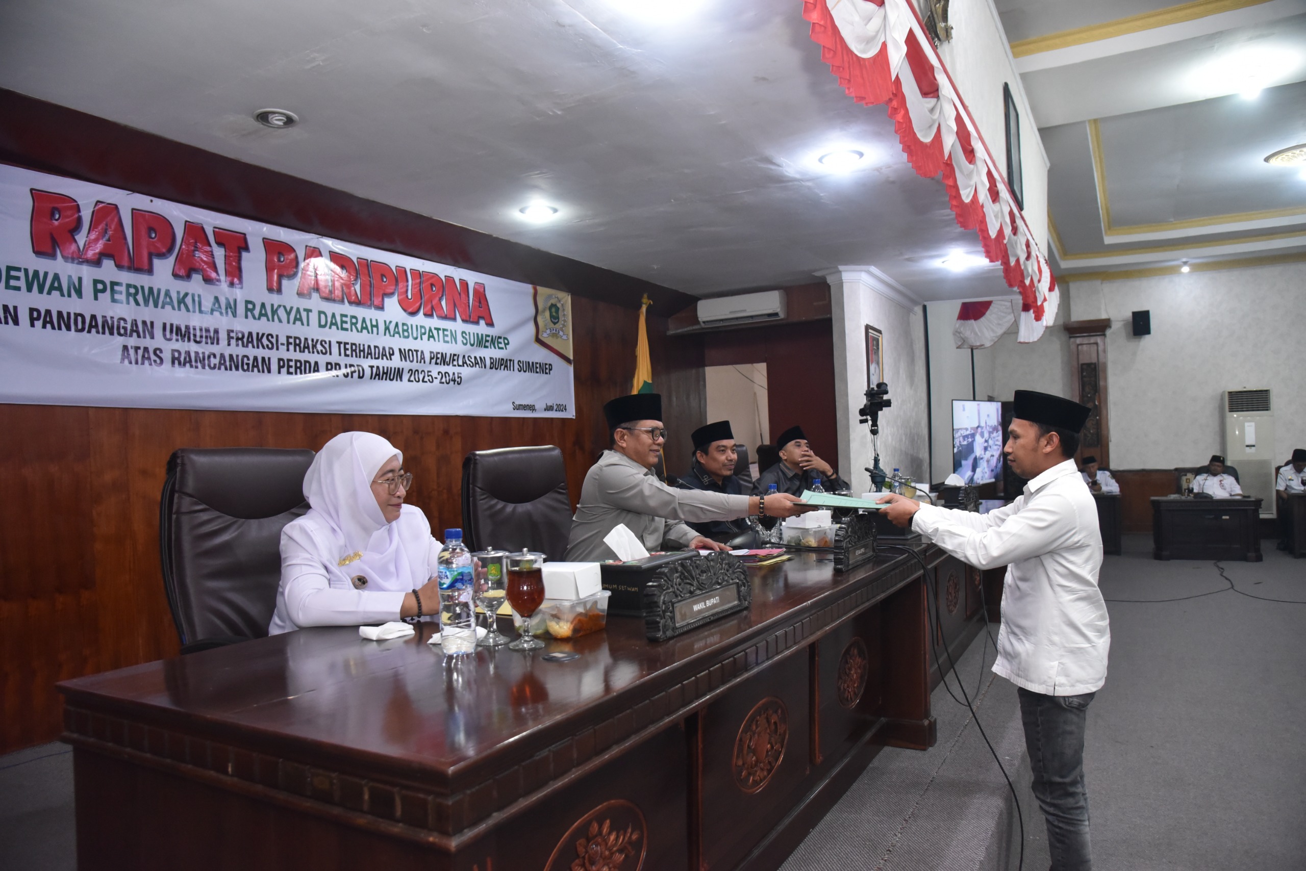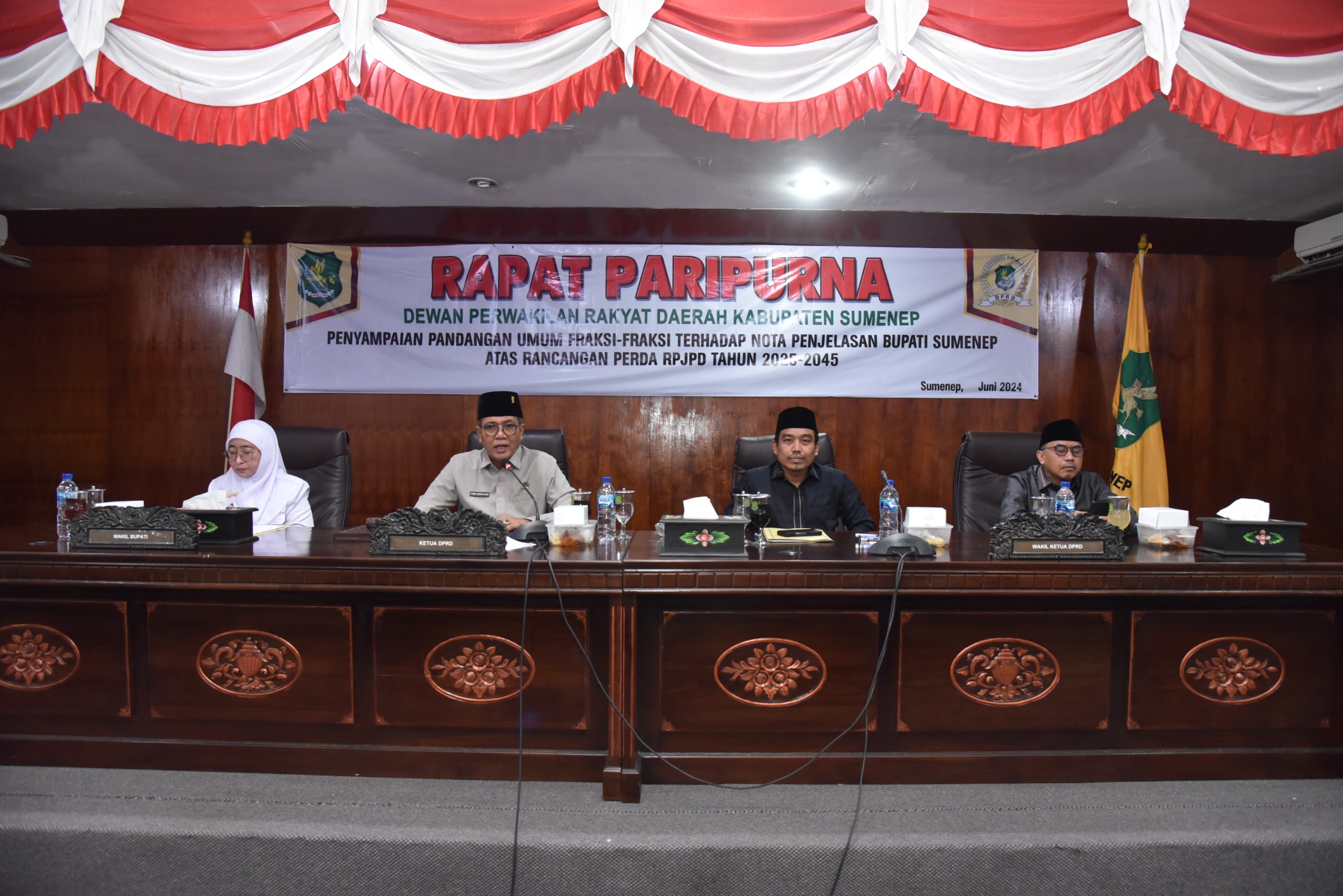 Agenda rapat adalah pandangan umum fraksi-fraksi terhadap nota penjelasan bupati atas Rancangan Peraturan Daerah (Raperda) Rencana Pembangunan Jangka Panjang Daerah (RPJPD) Sumenep 2025–2045.