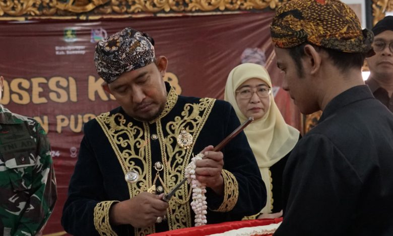 SUMENEP,Lacak.co.id – Bupati Sumenep, Madura, Jawa Timur Achmad Fauzi Wongsojudo menerima pusaka keraton dari para empu keris usai digelar kirab penyerahan.