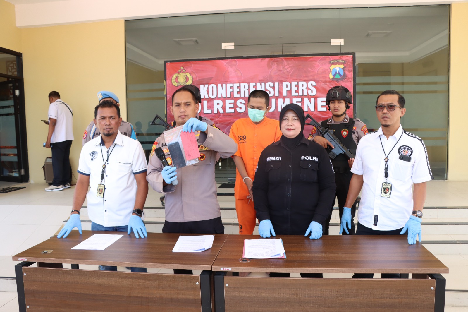 SUMENEP,Lacak.co.id – Seorang kurir ekspedisi berinisial RF (29) asal Dusun Basoka Tengah, Desa Basoka, Kecamatan Rubaru, diringkus Polisi usai mencuri Handphone.