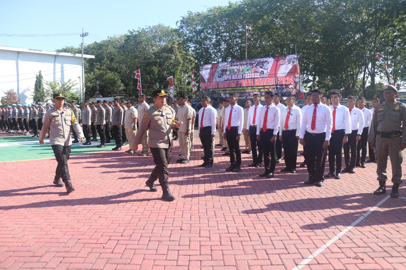 Apel gelar pasukan Operasi Mantap Praja Semeru sebagai langkah awal persiapan pengamanan Pilkada Serentak tahun 2024 di Kabupaten Sumenep ,yang akan berlangsung selama 135 hari terhitung mulai tanggal 19 Agustus s/d 31 Desember 2024.