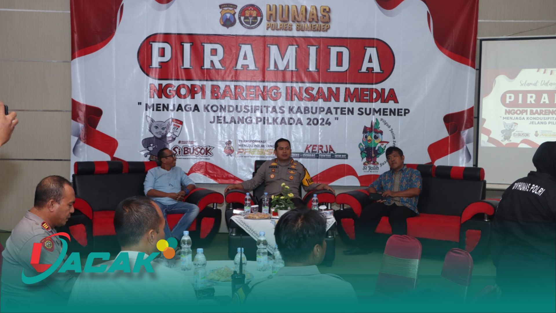 SUMENEP,Lacak.co.id – Polres Sumenep, Madura, Jawa Timur menggelar PIRAMIDA (Ngopi Bareng Insan Media) dengan tema Menjaga Kondusifitas Kabupaten Sumenep Jelang Pilkada 2024.