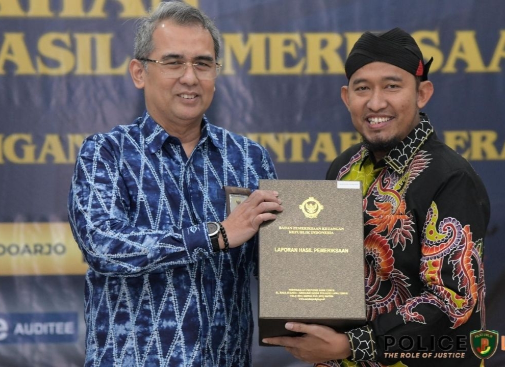 Penghargaan Opini WTP LKPD 2024 diserahkan oleh Kepala Perwakilan BPK Provinsi Jawa Timur Karyadi kepada Bupati Achmad Fauzi Wongsojudo.
