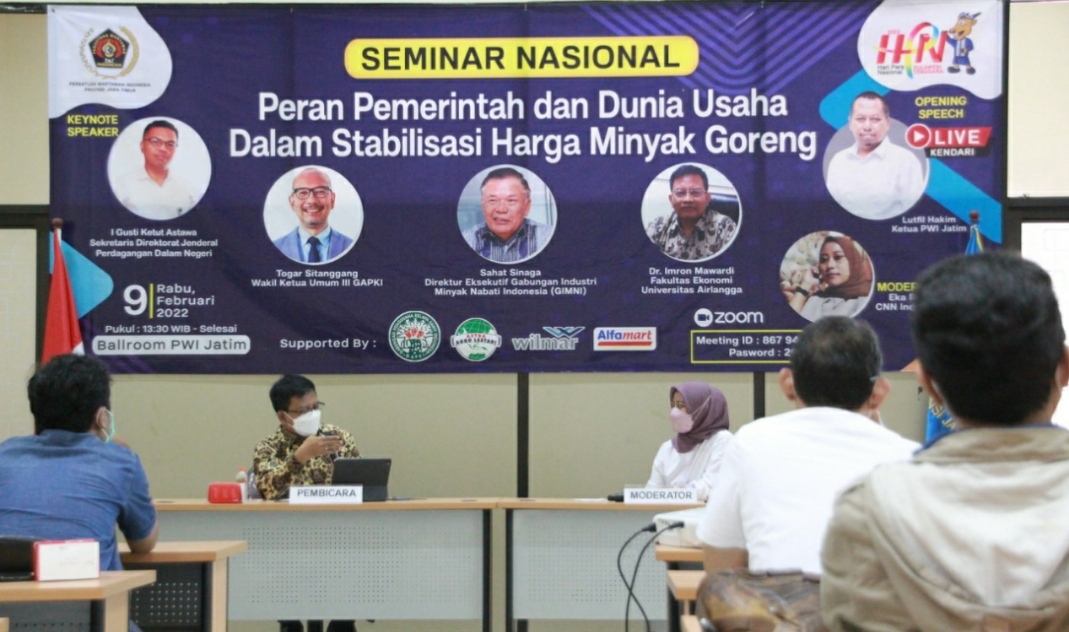 SURABAYA, Lacak.co.id – Dalam rangka menyemarakkan Hari Pers Nasional (HPN) 2022 PWI Jatim mengadakan seminar nasional dengan tema “Peran Pemerintah dan Dunia Usaha Dalam Stabilisasi Harga Minyak Goreng”.