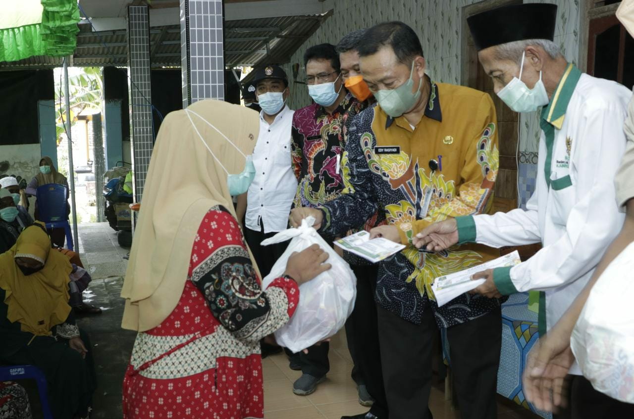 Pemberian bantuan sembako dan uang tunai kepada warga oleh Bupati Sumenep Achmad Fauzi, diwakili oleh Sekretaris Daerah Kabupaten Sumenep Ir. Edy Rasiyadi di salah satu rumah warga.