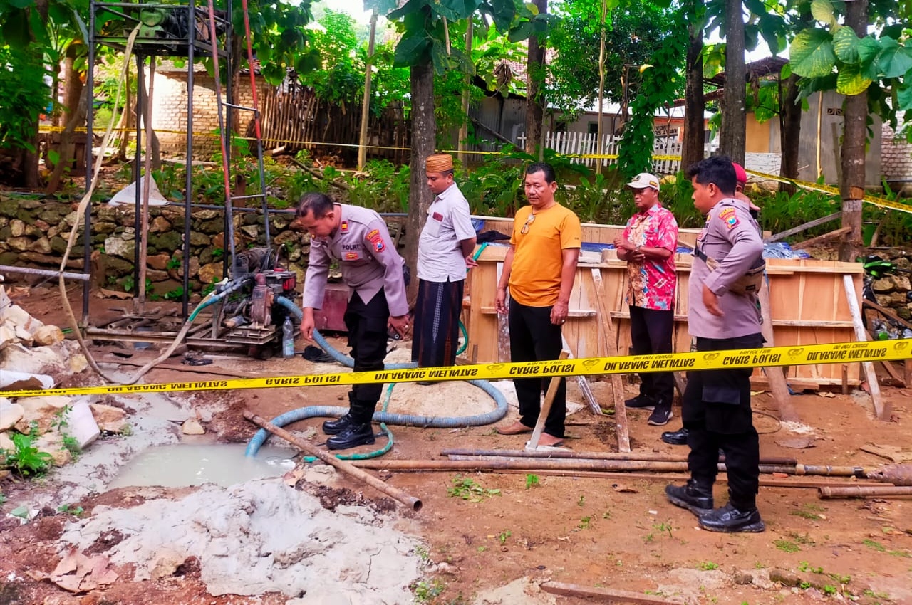 Petugas kemudian memasang garis polisi (police line) serta memberikan imbauan kepada masyarakat agar tidak mendekati area sumur bor demi keselamatan.