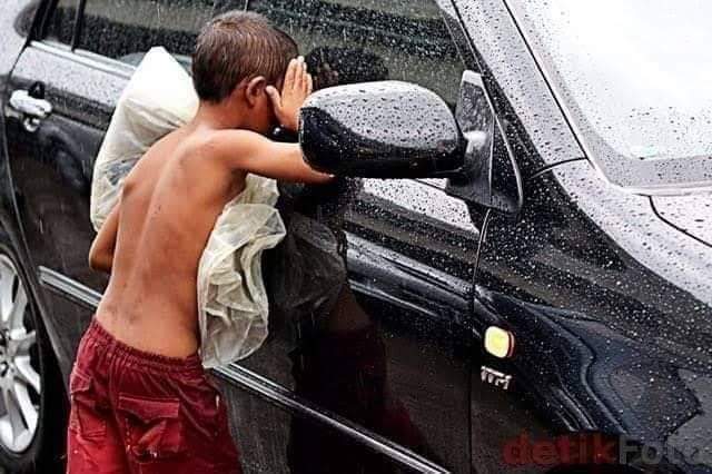 Karena aku sedang tidak mau diganggu, aku buru-buru serahkan uang itu. Lalu aku mulai mengamati anak itu. Dia mendekati tukang gorengan lalu membeli beberapa gorengan. Kemudian gorengan itu dia berikan pada sesosok orang tua yang duduk di bawah tiang listrik. Ketika dia melewati samping mobilku, aku buka kaca dan memanggilnya.