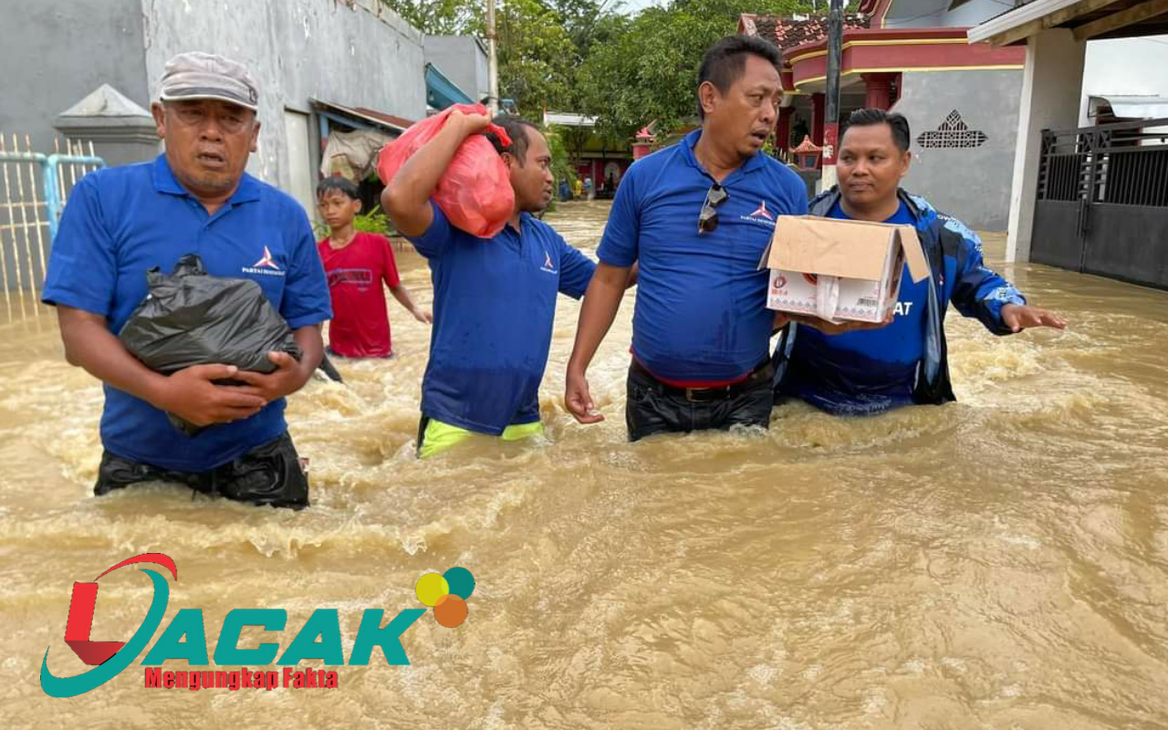 Pantauan media, politikus Partai Demokrat itu datang bersama tim, membagikan bantuan, walaupun air terus mengalis tidak meyurutkan semangat untuk berbagi.