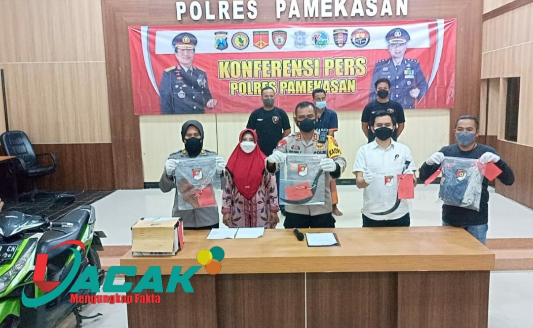 Kapolres Pamekasan AKBP Rogib Triyanto mengtakan penerapan pasal terhadap terduga pelaku berinisial AH (36) yakni pasal 340 Subsider pasal 338 Subsider atau pasal 170 ayat 02 KUHP, ketiga Subsider pasal 351 ayat (03) KUHP.