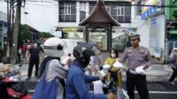 Jelang Buka Puasa, Sat Lantas Polrestabes Surabaya Bagi-bagi Takjil ke Pengendara