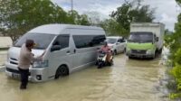 Polisi Bantu Pengendara Terdampak Banjir di Sumenep
