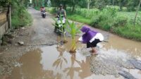 Viral di Medsos, Protes Jalan Rusak, Warga Lobuk Tanam Pohon Kunyit